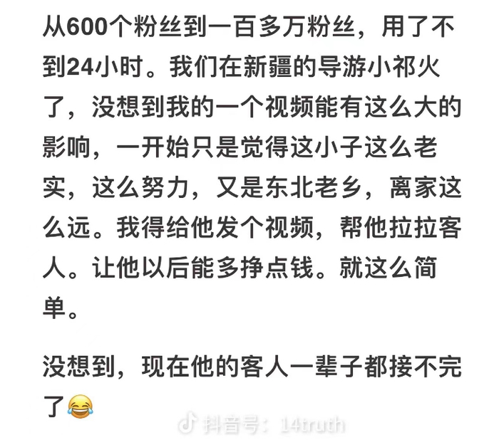 因游客发视频表扬,“傻小子”导游一夜涨粉百万,目前粉丝数逾229万