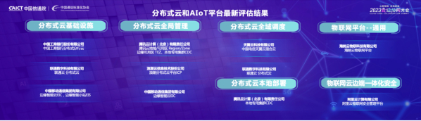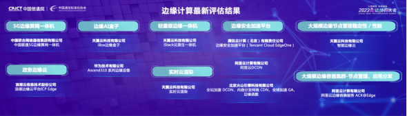 在成果发布环节,大会发布2023年分布式云、边缘计算、AIoT平台等最新评估结果,共有来自11家企业的22个产品及平台通过了本次评估。