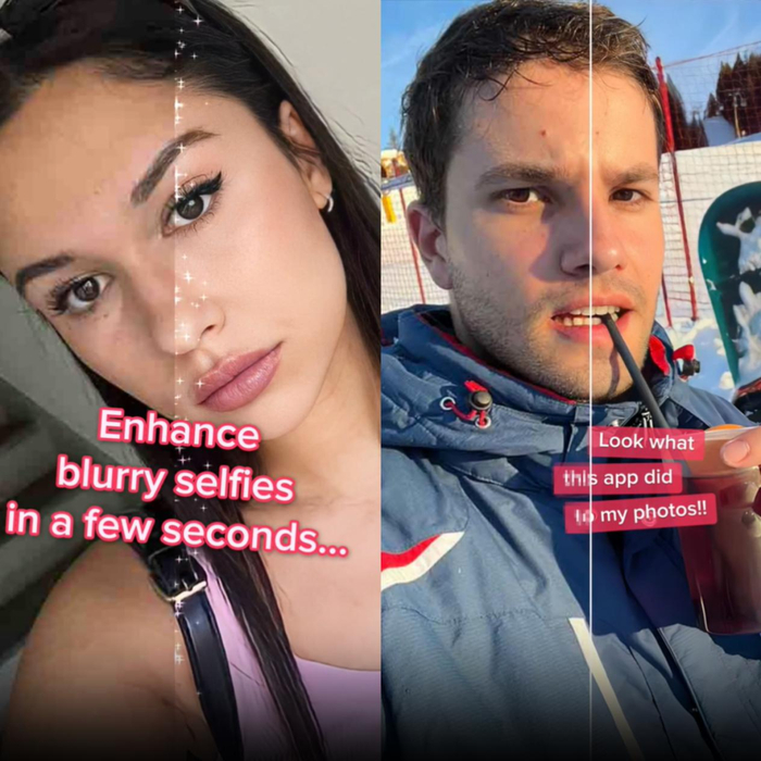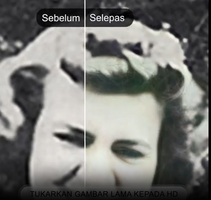 2. 开始有更多“修复”彩色照片的对比类素材。但这类彩色照片被修复后,提升的不仅是清晰度,人脸的肤色不均、泪沟明显等问题也都消失了。看上去,Remini 正在暗暗将“一键美颜”的概念混入“提升照片清晰度”中。我没有给你美颜,我只是还原了你真实的美貌。