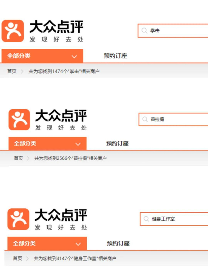 根据大众点评,在上海搜索「普拉提」,相关商户有2566个,「拳击馆」数量也达到近1500个。加起来已经逼近「健身工作室」的4147。
