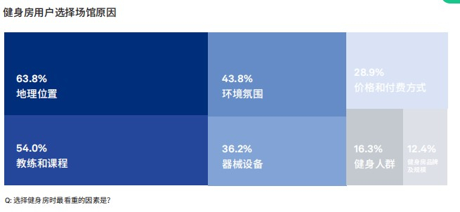当然,这种竞争本身并非二元对立。在各有优势下,专业馆与健身房之争的核心,实际上依然是「人」本身。《2022中国健身行业报告》显示,在地理位置之外,用户选择场馆最看重的因素,依然是教练和课程,占比达54%。