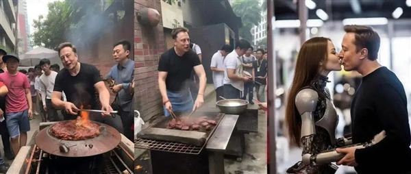 还有 “ 马斯克投资 AI 失败,卖烧烤还债 ”“ 马斯克在广州城中村摆摊的日子 ”“ 马斯克 kiss 女机器人 ” 。