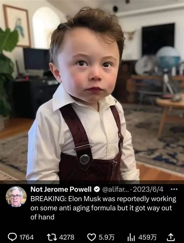 起因是一名博主在推特上发了张图,并配文: “ 据报道,埃隆 · 马斯克正在研究一种抗衰老配方,但结果失控了。 ”