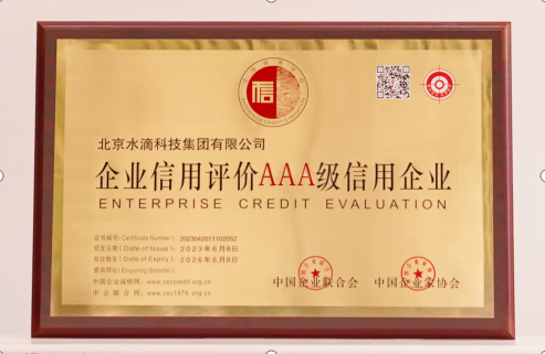 近日,中国企业联合会、中国企业家协会公布了2023年第一批企业信用评价结果,水滴公司获评“企业信用评价AAA级信用企业”。
