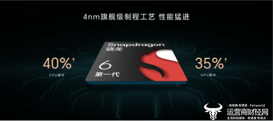 荣耀X50搭载行业首发第一代骁龙6芯片, 该处理器拥有旗舰级4nm工艺,有着极致的性能与出色的功耗表现。相较上一代,CPU性能提升40%,GPU性能提升35%。