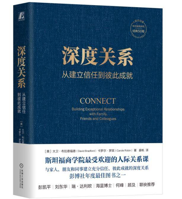 今天推荐的《深度关系》一书内容源自斯坦福商学院50余年经典课程“人际互动”。该课程影响了大批硅谷高管。本书由该课程创始人大卫·布拉德福德博士和继任课程负责人卡罗尔·罗宾博士精心改编,首次成书。两位作者将人际心理学的重要核心知识点应用在5种典型的人物关系——父女、夫妻、闺蜜、兄弟、同事中,探讨了关系由浅入深的发展过程,指明了深度关系的6个特征,让抽象的关系变化看得见,帮助读者与家人、朋友和同事建立充分信任、彼此成就的深度关系。