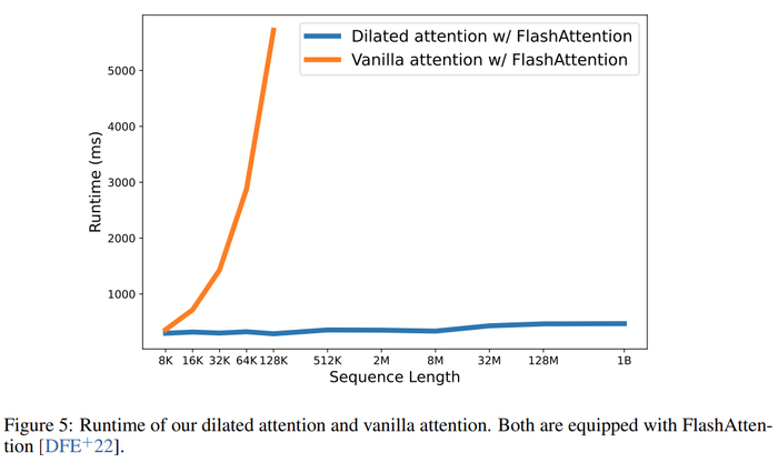 最终,该研究有效地将序列长度扩大到 1B 个 token,而且运行时(runtime)几乎是恒定的,如下图所示。相比之下,Vanilla Transformer 的运行时则会受到二次复杂度的影响。