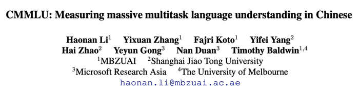MBZUAI,上海交通大学,微软亚洲研究院合作完成了一个全面的中文大模型基准——CMMLU。