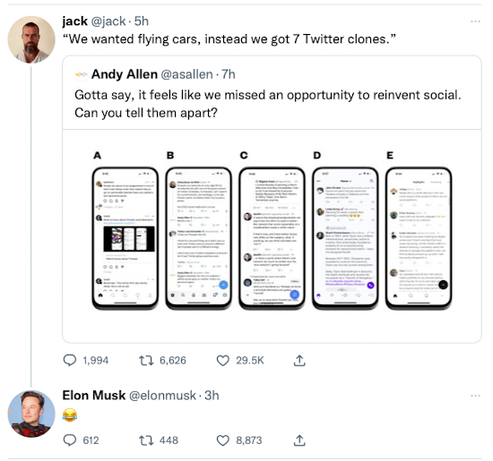 (多西和马斯克嘲讽推特又多一个模仿者)
