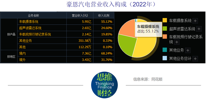 从收入结构来看,车载摄像系统、超声波雷达系统、车载视频行驶记录系统是公司主要收入来源,2022年分别贡献营业收入5.95亿元、2.65亿元、2.14亿元,分别占营业收入的55.12%、24.60%、19.85%。