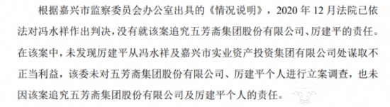 据招股书中显示,嘉兴市监 察委员会办公室出具的《情况说明》里说,并未发现厉建平从冯水祥及嘉兴市实业资产投资集团有限公司处谋取不正当利益,所以也没有对公司和厉建平个人进行立案调查,也未追究责任。