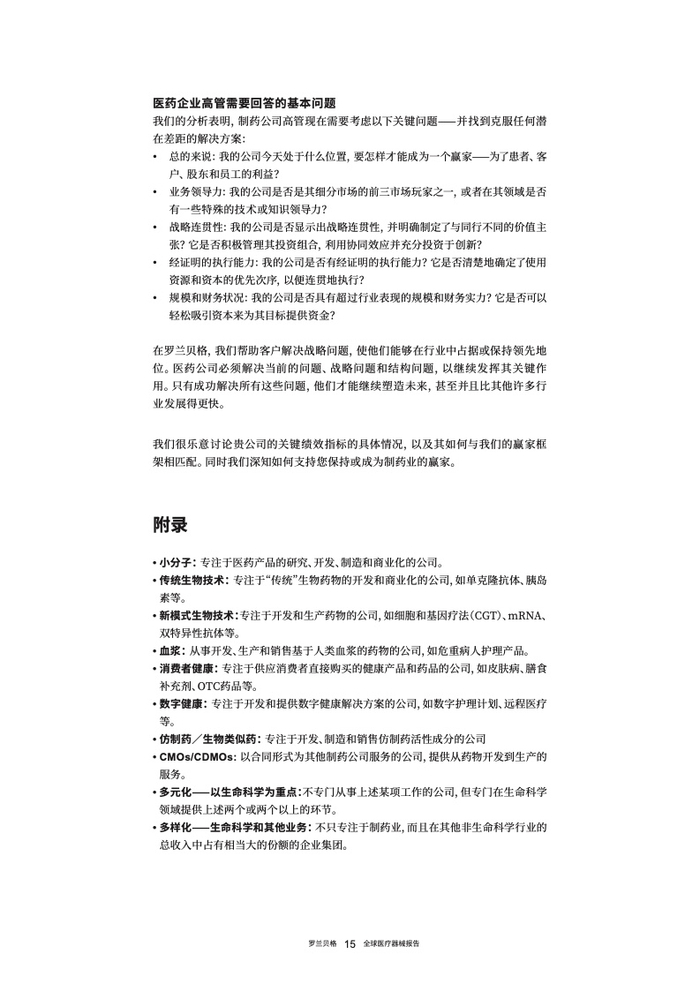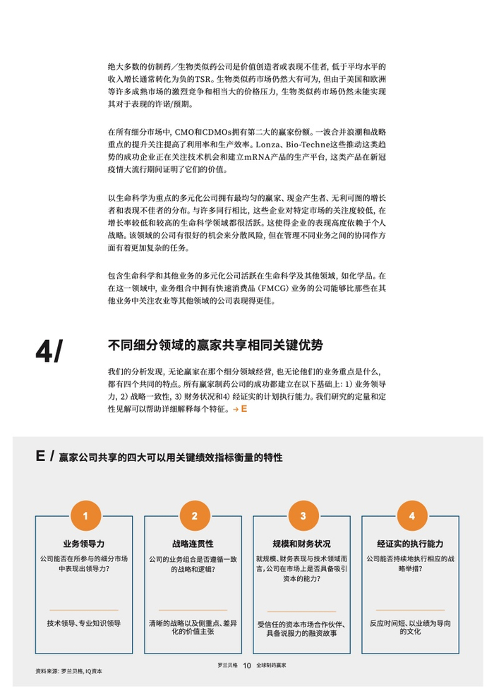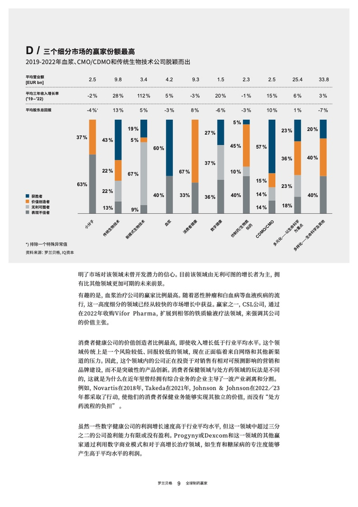 罗兰贝格分析了超过150家规模量级领先的上市制药和生命科学公司,并将其分为10个具有独特商业模式的关键细分领域: