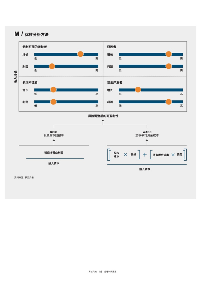 赢家 – 高增长、高盈利能力的公司。他们应当持续通过加强他们的竞争力,通过创新、与现有产品组合在战略上一致的投资,以及领先的成本结构去继续围绕开发创造真正的经济价值,从而扩展坚实的股权故事。