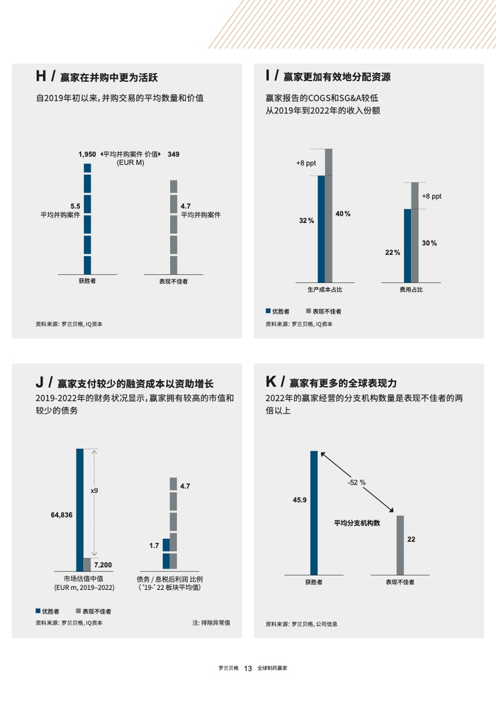 赢家追求(2.3)积极的投资组合管理,并购交易的平均数量和价值高于表现不佳者。赢家更有可能抓住符合其战略愿景的收购机会,同时也更积极地剥离不盈利的业务部门。