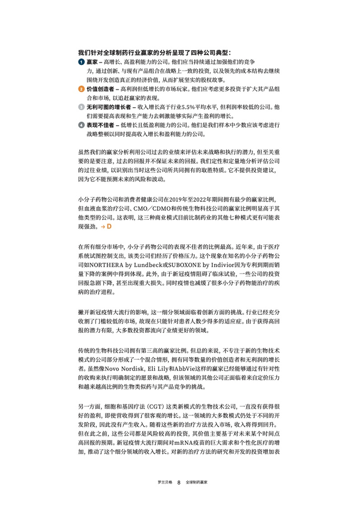 我们针对全球制药行业赢家的分析呈现了四种公司典型: