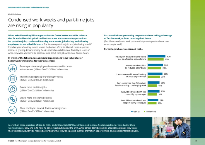 Z世代和千禧一代重新看待工作与生活的关系,注重工作生活平衡和灵活工作制,并更加青睐兼职工作