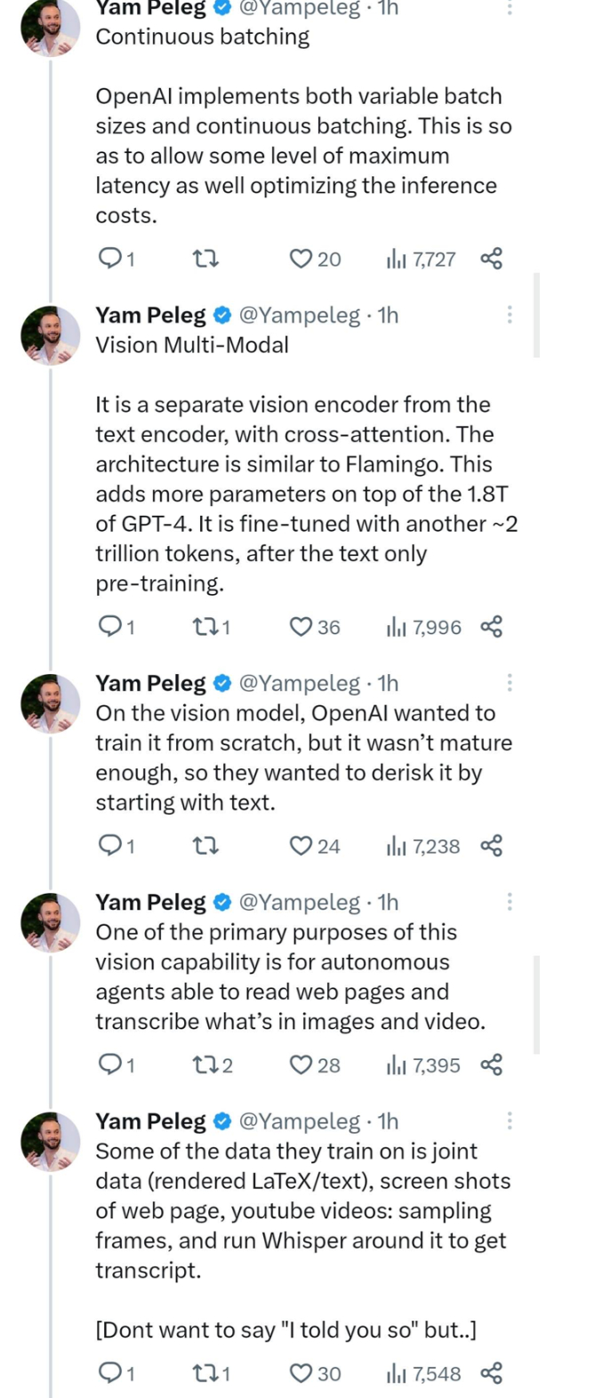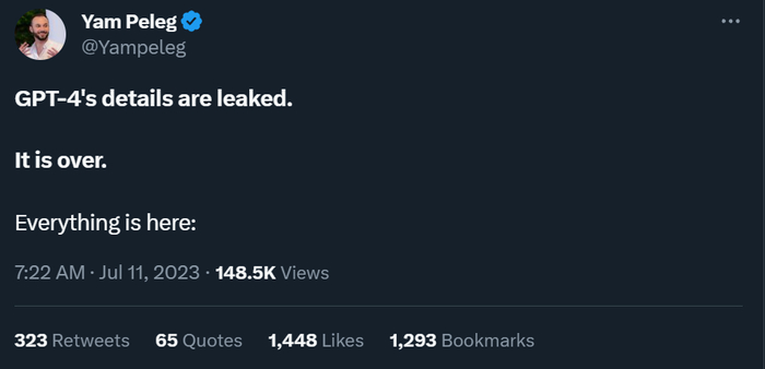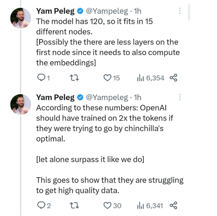 我们根据 Deep Trading(一家算法交易公司)创始人 Yam Peleg 的推文(目前已删除),整理了以下关于 GPT-4 的数据信息。感兴趣的读者可以细致研究下。