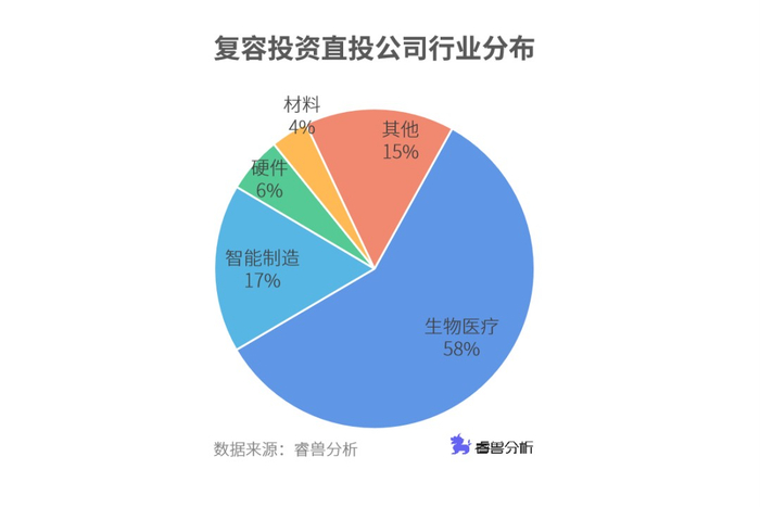 睿兽分数数据显示,复容投资一级市场直投项目超50起,其中有58%集中在生物医疗领域。除上文提到今年投资的3家生物医疗公司外,高端医疗器械设计制造厂商赛禾医疗亿元及以上A轮融资;肿瘤早筛及液体活检技术研发商鹍远生物的B轮融资;新型实体瘤细胞疗法研发商君赛生物A轮、A+轮融资中都有复容投资身影。
