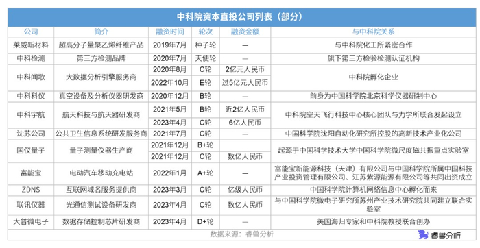 2019年中科院资本直投超高分子量聚乙烯纤维产品莱威新材料,目前,莱威新材料已与中科院化工所形成紧密合作;中科检测、中科闻歌、中科科仪、沈苏公司、国仪量子、富能宝等或是中科院孵化公司,或是中科院核心团队发起设立。如下图所示: