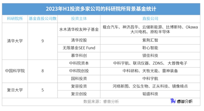 睿兽分析数据显示,仅2023年上半年,中国一级市场有科研院所背景基金直投的事件就有超30起,合计投资金额近25亿元。投资方包含中科院、清华大学系、复旦系等知名科研院所。