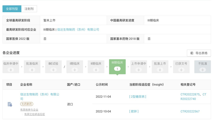 目前,信达生物与礼来合作研发的玛仕度肽的 2 型糖尿病和肥胖症适应均已推进到3期临床。