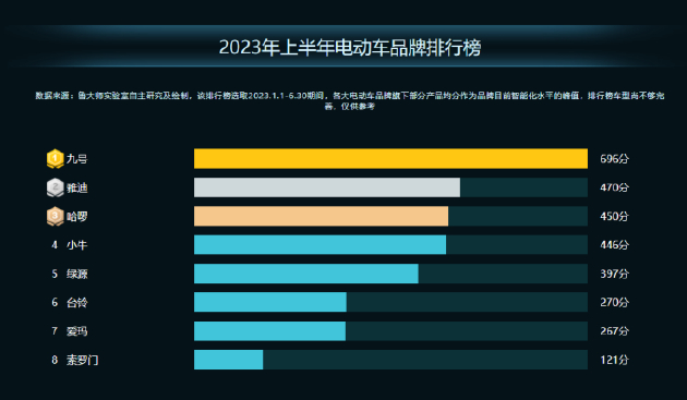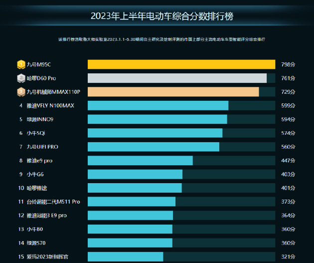 鲁大师2023半年报电动车智能排行:九号电动车独霸多项第一