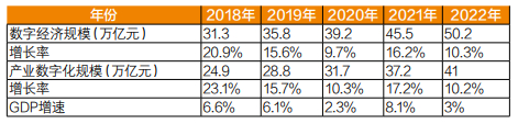 首先是我国数字经济增长趋缓。近几年来,我国数字经济保持健康发展,在促进经济实现恢复性增长和经济社会高质量发展方面发挥了重要作用。2018—2022年我国数字经济与GDP发展情况见表1。