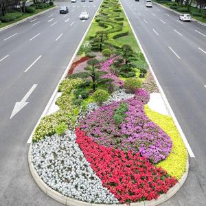 天府大道中分带设计则提炼太阳神鸟的整体形态并融合中国传统文化中“如意”的形状。“抽象提取后形成新的图案花纹,以千日红、一串红、佛甲草等草花进行模纹样式栽植。”张彤说。