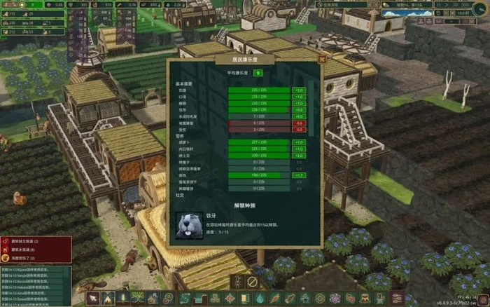 游戏本身目标足够明显:不断提高海狸们的“康乐度”,这个数值直接反映了海狸们的生活水平,玩家需要平衡好海狸住房、工作时间、食物、水源、生活环境、休闲等方方面面,不断实现更高的康乐度。