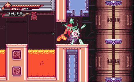 同时,爆燃技能也有相当多的分支选择,可以使用升龙拳,叹为观止等等酷炫的攻击连招,也可以流水弧线的远程攻击,还有创造平台和回血等等的主动技能用以提供更丰富的游戏体验。顺带一提,本作中爆燃技能的搓招不能说难,只能说相当地简单,只需要上下左右键+技能键即可放出对应的招式,在给玩家带来便捷操作的同时,也提供了一场绝妙的视觉盛宴。