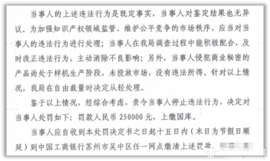 2019年12月5日,因违反《反不正当竞争法》第二十一条,追觅科技涉侵犯商业秘密,被苏州市吴中区市场监督管理局进行行政处罚,罚款金额为25万元。对于此事,网上未查到追觅科技的相关回应。