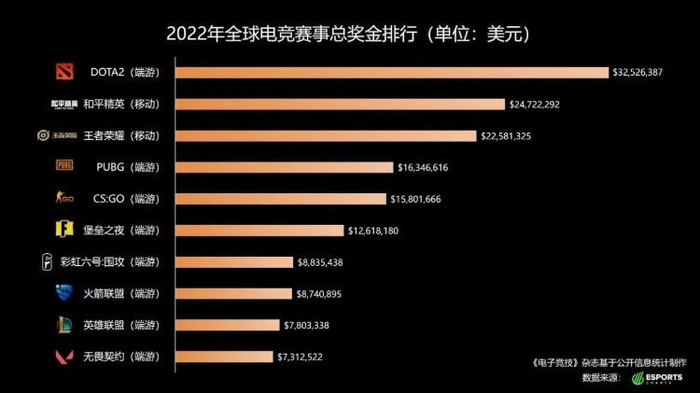 从赛事奖金来看,和平精英成为2020年全电竞品类中全球第三、移动端全球第一,2021年则是全电竞品类全球第二、移动端全球第一,2022年这个数据来到了全品类全球第二、移动端全球第一。这也足以说明和平精英赛事全球影响力。