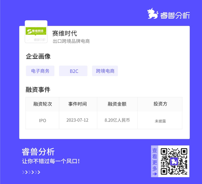 7月12日,赛维时代上市,募资8.2亿元,比原计划的6.22亿元还多募了2亿元。截止发稿,赛维时代的市值为150亿元,也是今年广东省A股市场跨境电商第一股。