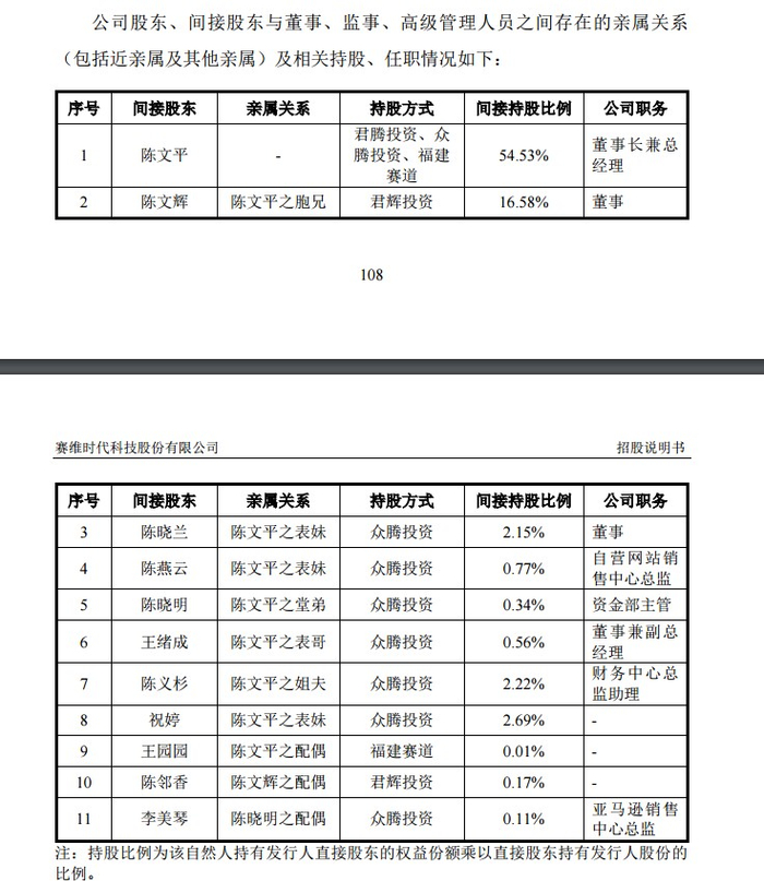 家族成员几乎补齐了公司重要的职位。四名董事,以及总经理、副总经理、资金部主管、销售中心总监等关键岗位,均由其亲属任职。公司上市后,赛维时代成为妥妥的百亿家族企业。