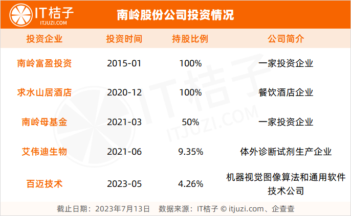 根据公开数据,南岭股份成立至今(数据截止至 2023 年 7 月 13 日)共出手投资 59 起事件,不过绝大部分为发展本村经济投资建设的村镇企业。