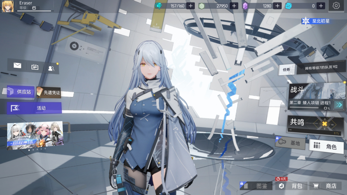 角色内容方面,除了常见的每个角色都有独有剧情,《尘白禁区》还设计了一整套和角色互动的基地玩法。在独立的基地场景内,玩家在培养足够的好感度后便可以邀请角色们入住宿舍。这也让所有的角色都拥有了一个可以在“等身等比”的呈现条件下与玩家自由互动的空间,在目前的二游中并不多见。