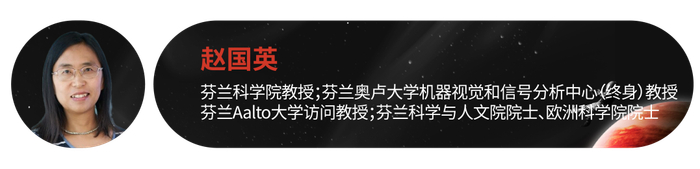 赵国英 2005 年毕业于中国科学院计算技术研究所并获工学博士学位,现任芬兰科学院教授、芬兰奥卢大学机器视觉和信号分析中心(终身)教授、芬兰 Aalto 大学访问教授、芬兰科学与人文院院士、欧洲科学院院士。其研究方向为计算机视觉、情感计算、机器学习、人工智能等。她发表学术论文 300 余篇,谷歌学术引用 24200 余次,研究成果曾被芬兰国家电视台、加拿大 Technology Discovery TV 和《麻省理工科技评论》等报道。指导的三十多位博士后和博士生已有多位成为教授,一位获得芬兰科学院 Fellow 职位,两位获得芬兰科学院博士后职位,多位获得极具竞争力的国际和国内奖项。她(曾)是 PR、IEEE TCSVT、IEEE TMM、IVC、JEI 等多个国际期刊的编委(AE),是芬兰人工智能协会董事会成员,ICMI 2021 等国际会议的程序主席和大会主席,电子电器工程师协会(IEEE)Fellow,模式识别国际协会(IAPR)Fellow 和亚太人工智能协会(AAIA)Fellow。她先后被评为 Nokia 访问教授,欧洲华人十大科技领军人才和 2020 芬兰华人学生学者年度人物等。