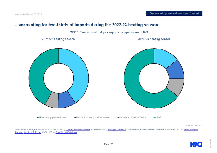 IEA发布了“2023年第二季度天然气市场报告”。全球天然气市场在2022/23供暖季逐渐走向再平衡。从2022年12月中旬到2023年第一季度末,东北亚、北美和欧洲主要市场的现货天然气价格下跌了近70%,而储气库在供暖季结束时远高于五年平均水平。