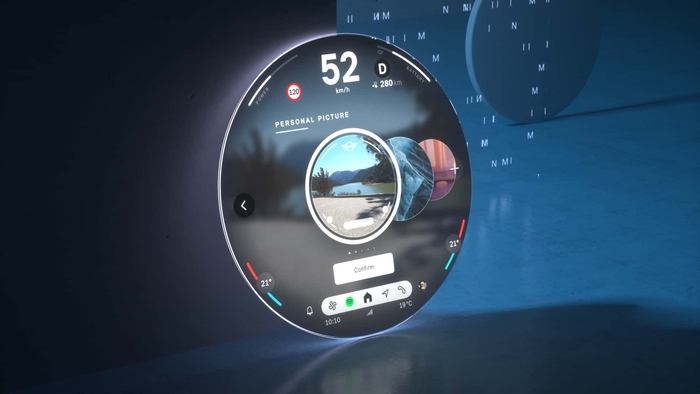 MINI Cooper EV 纯电车型内饰细节公开:圆形中控屏,提供多种个性化玩法