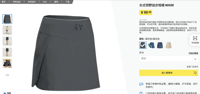 虽然具体产品信息可能有所变化,但这条在小红书上连续几年夏天被推荐的裙裤,版型一直延续至今,目前在迪卡侬官方网站的描述是“郊野徒步短裙”,由徒步旅行团队设计,适用于平原、森林或海岸等地方的徒步。