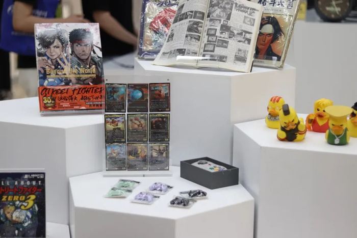作为档案馆特色,现场还布置有一些格斗游戏怀旧彩蛋,比如《格斗天书》《格斗全书》等“武学秘籍”;老主机版本的格斗游戏,都能直接上手试玩;还有卡普空正版授权的《街头霸王纪念档案》,也已在游研社商城上架: