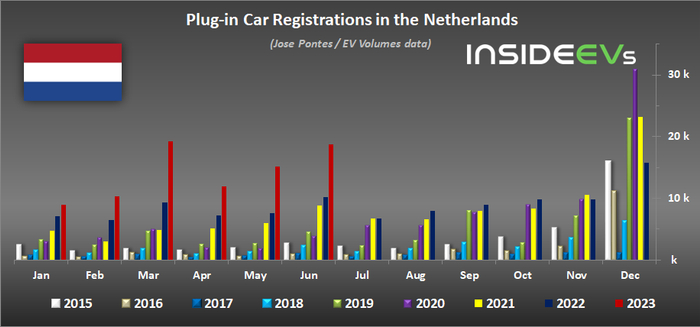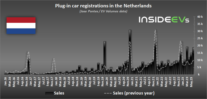 根据 EV Volumes 数据,荷兰 6 月新乘用车注册量同比增长 38% 达 41366 辆,而新能源汽车达 18792 辆同比增长 86%;其中超过三分之二是纯电动汽车,同比增长 89%,而市场份额也提高到了 33%。
