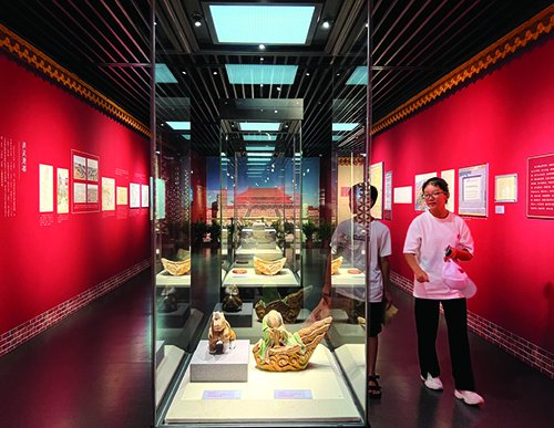 2020年,故宫博物院推出“丹宸永固———紫禁城建成六百年”展,成为当年的网红大展。在这次展览上,展出了11件来自明中都皇故城遗址的精美建筑构件,给观众留下了深刻印象。在《行走在故宫的安徽人》展览中,8件曾进京参展的明中都建筑构件“移驾”安徽名人馆。凤纹滴水、龙纹勾头、琉璃仙人、琉璃蹲兽、城砖……安徽观众可以现场感受明中都营建中对等级秩序的极致追求。