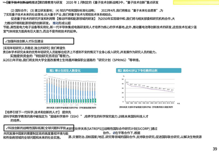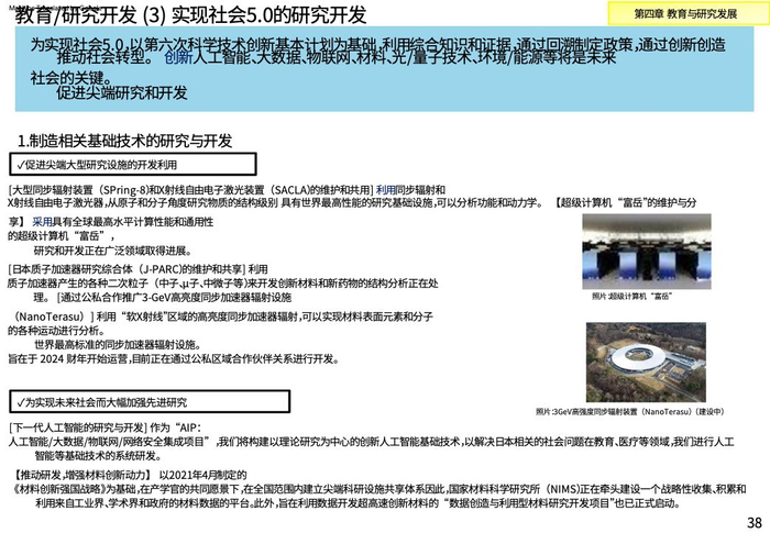 此外,根据日本第六次科学技术和创新基本计划提出以未来目标为导向,推导出解决方案,并据此制定政策,通过创新推动社会变革。日本正在大力推动创新型人工智能、大数据、物联网、材料、光学/量子技术、环境能源等对未来社会至关重要的关键前沿技术的研发。