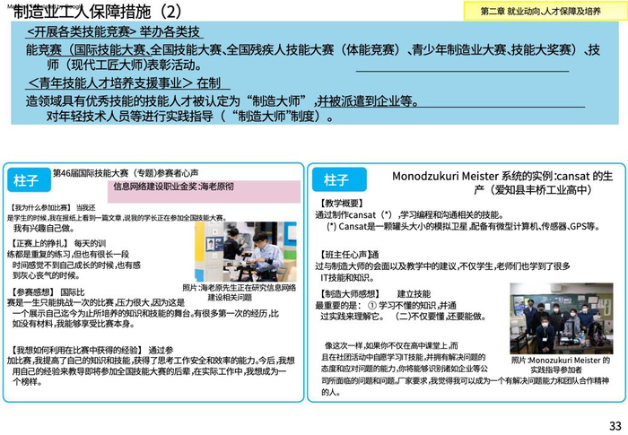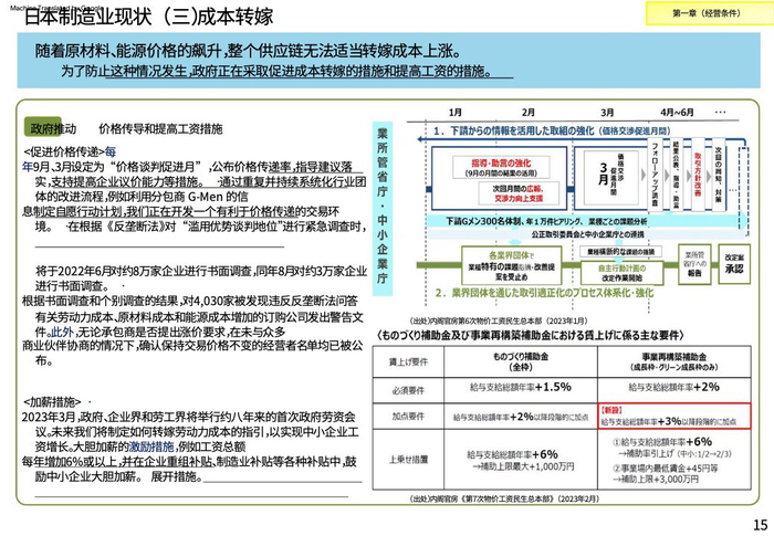 日本政府促进制造业基础技术的产业振兴相关举措还包括:普及具有高环境性能的产品;推进新产业集群或强化现有产业集群的功能,加强与新兴产业相关的支撑功能;加强网络安全;推动战略性标准化认证;加强供应链韧性;确保能源和原材料稳定供应等。