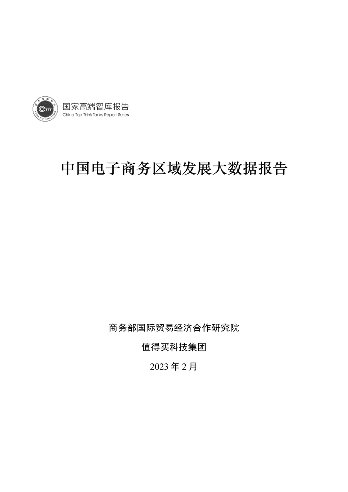 电子商务作为数字经济中发展规模最大、覆盖范围最广、创新创业最为活跃的重要组成部分,对做强做优做大我国数字经济、构建双循环新发展格局发挥了重要作用。近年来,我国电子商务持续蓬勃发展,新业态新模式不断涌现,电子商务对区域经济发展的作用持续提升。为了进一步反映我国区域电子商务发展现状,深入了解我国电子商务在区域层次上的结构特点与差异特征,助力区域电子商务产业发展,商务部国际贸易经济合作研究院与值得买科技集团合作,依托我国主要电商平台的相关大数据进行了深度分析,形成了一份旨在反映全国区域电子商务发展情况的分析报告。
