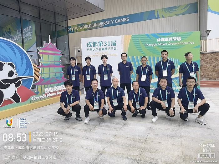 早在今年4月,王燃梁和他的团队就已经入驻成都市射击运动学校场馆中心。为了确保整个场馆网络通信能够达到大运会赛事期间的高规格要求,他们每日都会进行至少四次场馆技术系统的巡查、巡检工作,包括场馆多媒体平台调试、网络节点连通命令测试、无线网络中继稳定性检测等。同时使用手持式无线电监测设备反复监测,确保场馆内外通讯顺畅、迅捷、高效。他们更是连续12天昼夜奋战,组织多轮网络通信应急演练,不断总结和优化保障方案,以全力保障大运会期间的网络安全。
