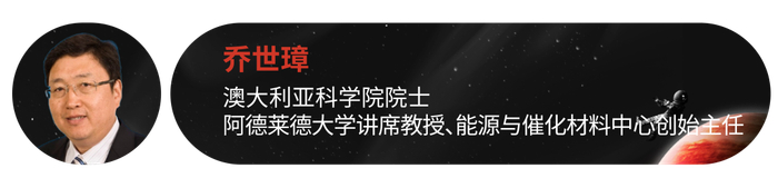 乔世璋教授现任澳大利亚阿德莱德大学讲席教授,能源与催化材料中心创始主任,也是澳大利亚研究理事会工业桂冠教授和澳大利亚桂冠学者。主要从事新能源技术方面的研究,包括电池、电催化、光催化、燃料电池等。在国际顶级期刊发表学术论文超过 520 篇,引用超过 98,050/113,010 次,h 指数为 161/172(Web of Sci/Google Scholar)。乔世璋教授已获得多项重要奖励与荣誉,包括 2021 年南澳年度科学家奖等。乔教授是澳大利亚科学院院士、国际化学工程师学会会士、澳大利亚皇家化学会会士、英国皇家化学会会士等。同时,他担任国际刊物英国皇家化学会杂志 EES Catalysis 主编,也是科睿唯安/汤姆森路透化学、材料科学和环境生态三个领域的高被引科学家(近十年有 120 篇高被引论文)。