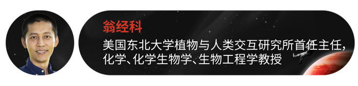 翁经科教授 2003 年毕业于浙江大学生物技术专业,获得学士学位,2009 年获得普渡大学获生物化学博士学位。2009 年至 2013 年在索尔克生物研究所和霍华德·休斯医学研究所从事博士后研究。2013 年至 2023 年,翁教授任麻省理工学院白头研究所(Whitehead Institute)成员,生物系副教授,现为美国东北大学植物与人类交互研究所首任主任兼化学、化学生物学、生物工程学教授。翁教授的主要研究方向为植物代谢进化、合成生物学及药物发现,此外还是多个生物科技公司的联合创始人和科学顾问。