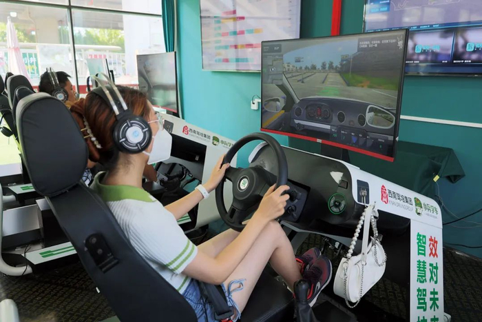 2022年8月9日,重庆。学员在AI智能模拟器上进行科目二训练。(图/视觉中国)
